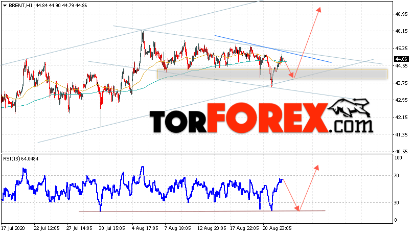 Таким образом, Аналитика и прогноз цен на нефть на 25 августа 2020 предполагает попытку теста уровня поддержки вблизи области 44.05. Далее, продолжение роста с целью выше уровня 47.05. В пользу подъёма выступит тест линии тренда на индикаторе относительной силы. Отменой варианта роста цены нефти Brent станет падение и пробой уровня 42.55. Это укажет на продолжение снижения котировок в область ниже уровня 39.05.