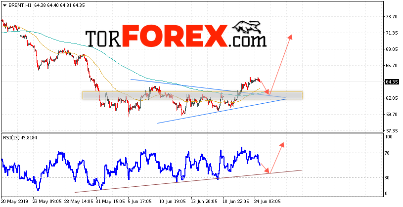В пользу роста котировок и цен на нефть BRENT выступит тест восходящей линии тренда на индикаторе относительной силы. Вторым сигналом станет отскок от верхней границы модели «Треугольник». Отменой варианта роста цен на нефть станет падение и пробой уровня 59.75 долларов за баррель. Это укажет на пробой области поддержки и продолжение снижения котировок в область ниже уровня 56.05. Подтверждением роста котировок выступит пробой области сопротивления и закрытие цен на BRENT выше уровня 65.75.