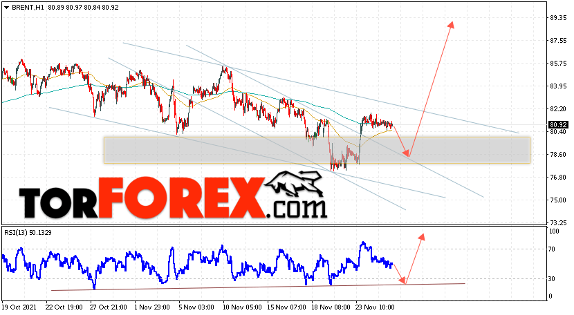 Дополнительным сигналом в пользу роста котировок и цен на нефть Brent выступит тест линии тренда на индикаторе относительной силы (RSI). Вторым сигналом станет отскок от верхней границы нисходящего канала. Отменой варианта роста цен на нефть станет падение и пробой уровня 76.05 долларов за баррель. Это укажет на пробой области поддержки и продолжение падения котировок BRENT в область ниже уровня 73.05. Подтверждением росту котировок выступит пробой уровня сопротивления и закрытие цен на Brent выше уровня 82.55.