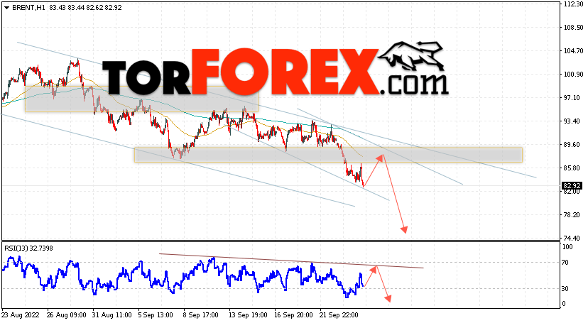 Дополнительным сигналом в пользу падения котировок и цен на нефть Brent выступит тест линии сопротивления на индикаторе относительной силы (RSI). Вторым сигналом станет отскок от верхней границы нисходящего канала. Отменой варианта снижения цен на нефть станет сильный рост и пробой уровня 93.05 долларов за баррель. Это укажет на пробой области сопротивления и продолжение роста котировок BRENT в область выше уровня 105.05. Подтверждением падению котировок выступит пробой области поддержки и закрытие цен на Brent ниже уровня 78.55.