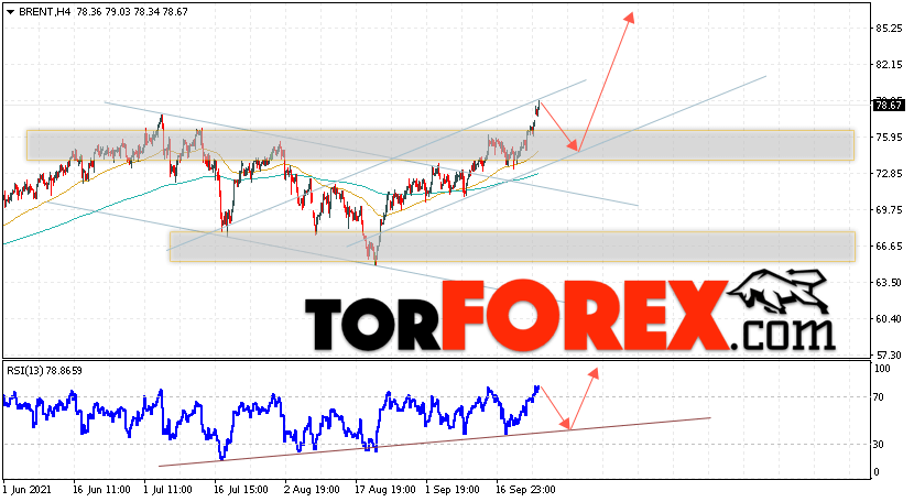 Дополнительным сигналом в пользу подъёма котировок и цен на нефть Brent выступит тест линии поддержки на индикаторе относительной силы (RSI). Вторым сигналом станет отскок от нижней границы бычьего канала. Отменой варианта роста цен на нефть станет падение и пробой уровня 71.65 долларов за баррель. Это укажет на пробой области поддержки и продолжение падения котировок BRENT в область ниже уровня 68.05. Подтверждением подъёма котировок выступит пробой уровня сопротивления и закрытие цен на Brent выше уровня 80.05.