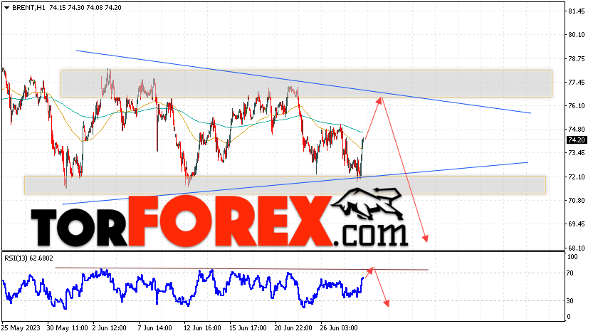 Таким образом, Аналитика и прогноз цен на нефть на 29 июня 2023 предполагает попытку теста уровня сопротивления вблизи области 76.05. Далее, продолжение падения нефти с целью ниже уровня 68.35. В пользу снижения актива выступит тест линии тренда на индикаторе относительной силы. Отменой варианта падения цены нефти Brent станет сильный рост и пробой уровня 78.05. Это укажет на продолжение подъёма котировок в область выше уровня 85.05.