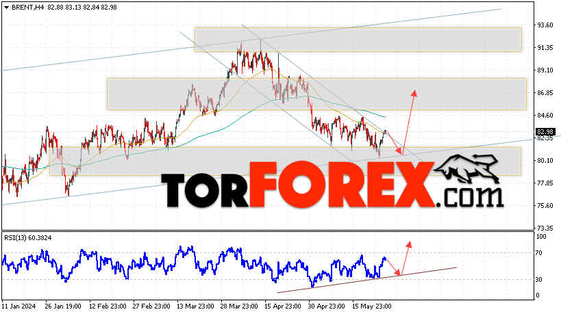 Дополнительным сигналом в пользу подъёма котировок и цен на нефть Brent выступит тест линии поддержки на индикаторе относительной силы (RSI). Вторым сигналом станет отбой от верхней границы медвежьего канала. Отменой варианта роста цен на нефть станет падение цен и пробой уровня 78.45 долларов за баррель. Это укажет на пробой области поддержки и продолжение падения котировок BRENT в область ниже уровня 72.05. Подтверждением росту котировок и цен на нефть выступит пробой области сопротивления и закрытие цен на Brent выше уровня 84.65, что укажет на пробой верхней границы нисходящего канала.