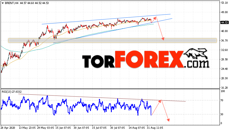 Таким образом, Аналитика и прогноз цен на нефть на 3 сентября 2020 предполагает попытку ниже уровня сопротивления вблизи области 45.35. Далее, продолжение падения с целью ниже уровня 37.05. В пользу снижения выступит тест линии тренда на индикаторе относительной силы. Отменой варианта падения цены нефти Brent станет сильный рост и пробой уровня 49.65. Это укажет на продолжение подъёма котировок в область ниже уровня 53.75.