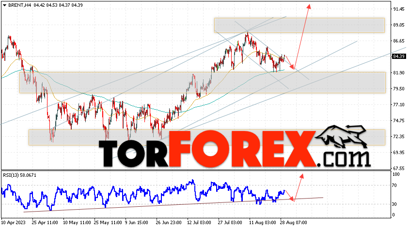 Дополнительным сигналом в пользу роста котировок и цен на нефть Brent выступит тест линии поддержки на индикаторе относительной силы (RSI). Вторым сигналом станет отбой от нижней границы бычьего канала. Отменой варианта подъёма цен на нефть станет падение и пробой уровня 79.35 долларов за баррель. Это укажет на пробой области поддержки и продолжение падения котировок BRENT в область ниже уровня 74.05. Подтверждением росту котировок и цен на нефть выступит пробой области сопротивления и закрытие цен на Brent выше уровня 87.05.
