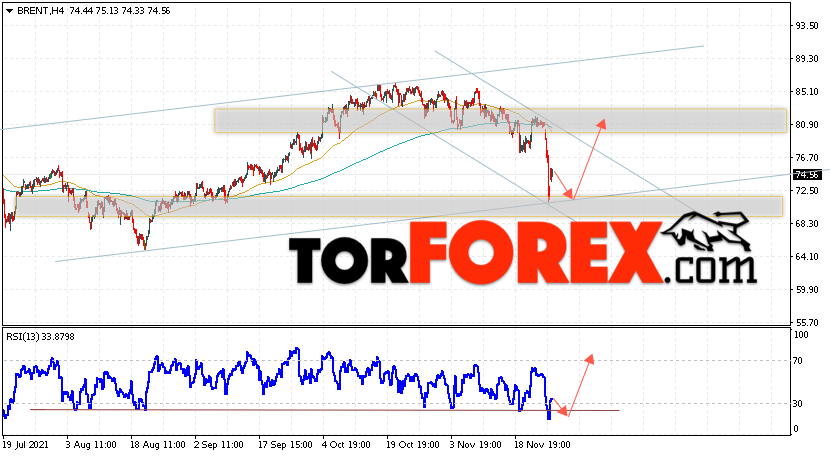 Таким образом, Аналитика и прогноз цен на нефть на 30 ноября 2021 предполагает попытку теста уровня поддержки вблизи области 72.45. Далее, продолжение роста нефти с целью выше уровня 80.90. В пользу подъёма актива выступит тест линии тренда на индикаторе относительной силы. Отменой варианта роста цены нефти Brent станет падение и пробой уровня 67.55. Это укажет на продолжение падения котировок в область ниже уровня 62.55.