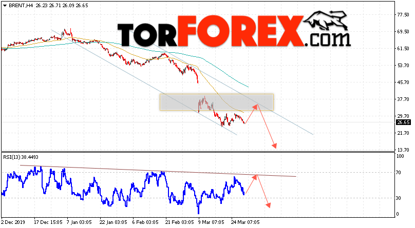 Дополнительным сигналом в пользу снижения котировок и цен на нефть Brent выступит тест нисходящей линии тренда на индикаторе относительной силы (RSI). Вторым сигналом станет отскок от верхней границы нисходящего канала. Отменой варианта падения цен на нефть станет сильный рост цен и пробой уровня 38.55 долларов за баррель. Это укажет на пробой области сопротивления и продолжение роста котировок в область выше уровня 45.05. Подтверждением падения котировок выступит пробой области поддержки и закрытие цен на Brent ниже уровня 22.05.