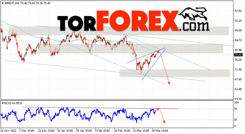 Таким образом, Аналитика и прогноз цен на нефть на 31 марта 2023 предполагает попытку теста уровня сопротивления вблизи области 80.35. Далее, продолжение падения нефти с целью ниже уровня 65.65. В пользу падения актива выступит тест линии тренда на индикаторе относительной силы. Отменой варианта снижения цены нефти Brent станет сильный рост и пробой уровня 83.75. Это укажет на продолжение подъёма котировок в область выше уровня 89.65.
