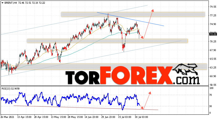 Дополнительным сигналом в пользу подъёма котировок и цен на нефть Brent выступит тест линии поддержки на индикаторе относительной силы (RSI). Вторым сигналом станет отскок от нижней границы разворотной модели ”Голова и плечи. Отменой варианта роста цен на нефть станет падение и пробой уровня 69.35 долларов за баррель. Это укажет на пробой области поддержки и продолжение падения котировок BRENT в область ниже уровня 65.55. Подтверждением роста котировок выступит пробой уровня сопротивления и закрытие цен на Brent выше уровня 75.95.