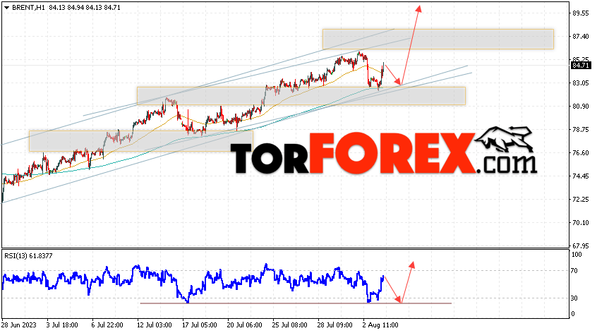 Дополнительным сигналом в пользу роста котировок и цен на нефть Brent выступит тест линии поддержки на индикаторе относительной силы (RSI). Вторым сигналом станет отбой от нижней границы бычьего канала. Отменой варианта подъёма цен на нефть станет падение и пробой уровня 80.05 долларов за баррель. Это укажет на пробой области поддержки и продолжение падения котировок BRENT в область ниже уровня 74.55. Подтверждением росту котировок и цен на нефть выступит пробой области сопротивления и закрытие цен на Brent выше уровня 88.05.