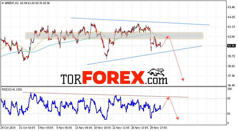 Таким образом, Аналитика и прогноз цен на нефть на 4 декабря 2019 предполагает попытку теста уровня сопротивления вблизи области 62.05. Далее, продолжение падения с целью ниже уровня 57.25. В пользу снижения выступит тест нисходящей линии на индикаторе относительной силы. Отменой варианта падения цены нефти Brent станет сильный рост и пробой уровня 64.55. Это укажет на продолжение подъёма котировок в область выше уровня 68.55.