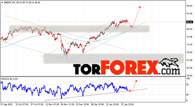 Дополнительным сигналом в пользу подъёма котировок и цен на нефть Brent выступит тест линии тренда на индикаторе относительной силы (RSI). Вторым сигналом станет отскок от нижней границы бычьего канала. Отменой варианта роста цен на нефть станет падение и пробой уровня 80.75 долларов за баррель. Это укажет на пробой области сопротивления и продолжение снижения котировок BRENT в область ниже уровня 77.65. Подтверждением подъёму котировок выступит пробой области сопротивления и закрытие цен на Brent выше уровня 91.55.