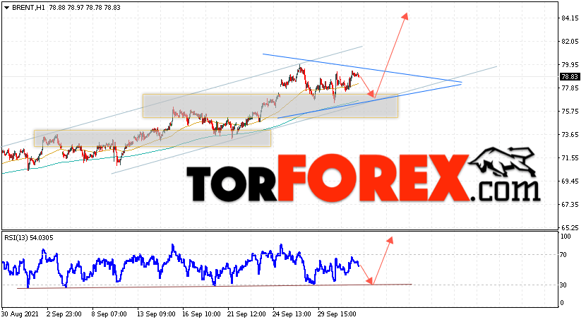 Дополнительным сигналом в пользу подъёма котировок и цен на нефть Brent выступит тест линии поддержки на индикаторе относительной силы (RSI). Вторым сигналом станет отскок от нижней границы бычьего канала. Отменой варианта роста цен на нефть станет падение и пробой уровня 73.45 долларов за баррель. Это укажет на пробой области поддержки и продолжение падения котировок BRENT в область ниже уровня 70.05. Подтверждением подъёма котировок выступит пробой уровня сопротивления и закрытие цен на Brent выше уровня 81.45, что укажет на пробой верхней границы модели ”Треугольник”.