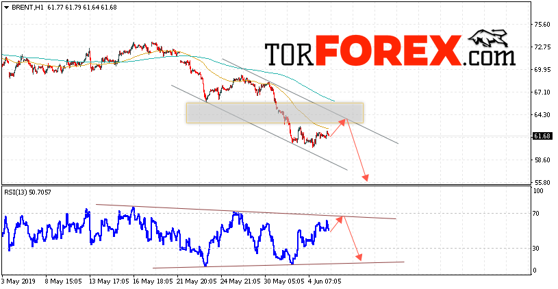 Таким образом, Аналитика и прогноз цен на нефть на 6 июня 2019 предполагает попытку теста уровня сопротивления вблизи области 63.25. Далее, продолжение падения с целью ниже уровня 55.80. В пользу снижения выступит тест линии тренда на индикаторе относительной силы. Отменой варианта падения цены нефти BRENT станет сильный рост и пробой уровня 65.55. Это укажет на продолжение подъёма котировок в область выше уровня 69.45.