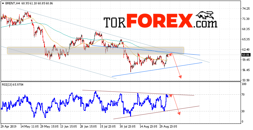 Таким образом, Аналитика и прогноз цен на нефть на 6 сентября 2019 предполагает попытку теста уровня сопротивления вблизи области 61.35. Далее, продолжение падения с целью ниже уровня 53.45. В пользу снижения выступит тест линии тренда на индикаторе относительной силы. Отменой варианта падения цены нефти Brent станет сильный рост и пробой уровня 62.65. Это укажет на продолжение подъёма котировок в область выше уровня 65.95.