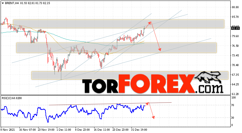 Дополнительным сигналом в пользу снижения котировок и цен на нефть Brent выступит тест нисходящей линии тренда на индикаторе относительной силы (RSI). Вторым сигналом станет отскок от верхней границы бычьего канала. Отменой варианта падения цен на нефть станет сильный рост и пробой уровня 85.65 долларов за баррель. Это укажет на пробой области сопротивления и продолжение подъёма котировок BRENT в область выше уровня 90.55. Подтверждением падению котировок выступит пробой нижней границы бычьего канала и закрытие цен на Brent ниже уровня 79.05, что укажет на пробой нижней границы бычьего канала.