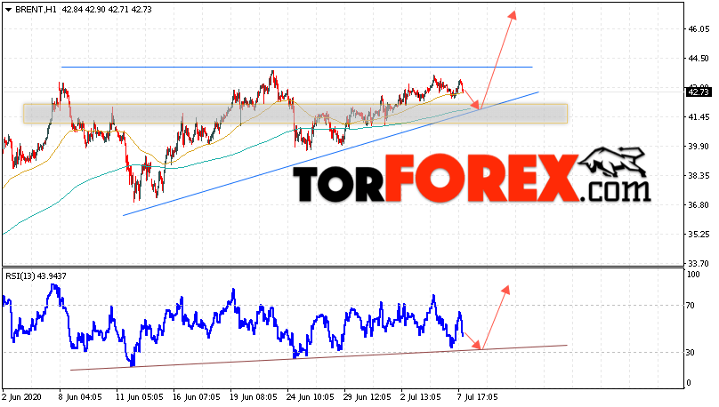 Таким образом, Аналитика и прогноз цен на нефть на 8 июля 2020 предполагает попытку теста уровня поддержки вблизи области 41.75. Далее, продолжение подъёма с целью выше уровня 47.05. В пользу подъёма выступит тест линии тренда на индикаторе относительной силы. Отменой варианта роста цены нефти Brent станет падение и пробой уровня 40.05. Это укажет на продолжение снижения котировок в область ниже уровня 36.55.