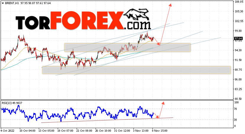 Дополнительным сигналом в пользу роста котировок и цен на нефть Brent выступит тест линии поддержки на индикаторе относительной силы (RSI). Вторым сигналом станет отскок от нижней границы бычьего канала. Отменой варианта подъёма цен на нефть станет падение и пробой уровня 91.05 долларов за баррель. Это укажет на пробой области поддержки и продолжение падения котировок BRENT в область ниже уровня 84.05. Подтверждением росту котировок выступит пробой области сопротивления и закрытие цен на Brent выше уровня 102.00, что укажет на пробой верхней границы бычьего канала.