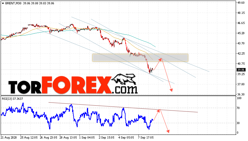 Таким образом, Аналитика и прогноз цен на нефть на 9 сентября 2020 предполагает попытку ниже уровня сопротивления вблизи области 41.25. Далее, продолжение падения с целью ниже уровня 36.25. В пользу снижения выступит тест линии тренда на индикаторе относительной силы. Отменой варианта падения цены нефти Brent станет сильный рост и пробой уровня 43.55. Это укажет на продолжение подъёма котировок в область ниже уровня 48.25.