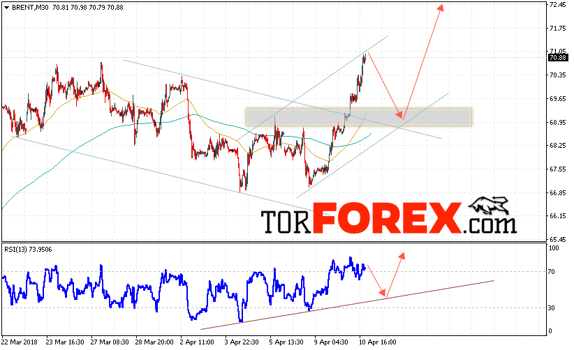 Таким образом, Аналитика и прогноз цен на нефть на 11 апреля 2018 предполагает попытку теста уровня поддержки вблизи области 69.10 и продолжения роста с целью выше уровня 72.50, отменой варианта роста цены нефти BRENT станет падение и пробой уровня 68.00, что укажет на продолжение падения котировок в область ниже уровня 66.50.