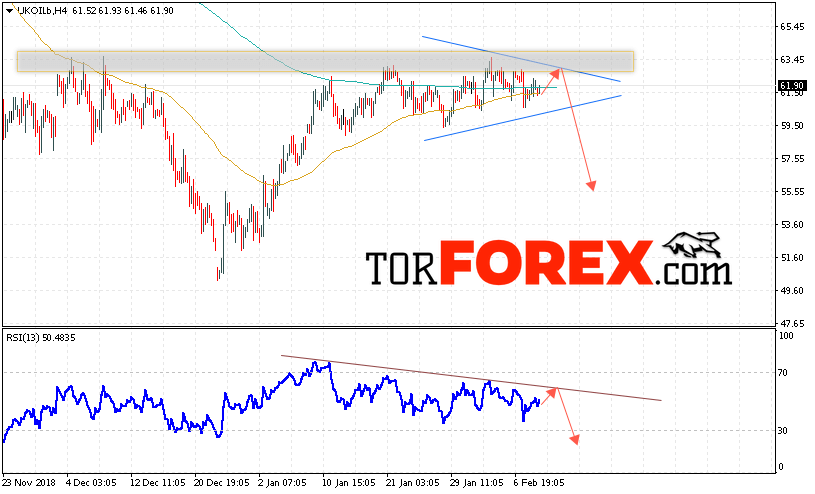 В пользу снижения котировок и цен на нефть BRENT выступит тест линии сопротивления на индикаторе относительной силы. А также отскок от верхней границы модели «Треугольник». Отменой варианта падения цен на нефть станет сильный рост и пробой уровня 65.05 долларов за баррель. Это укажет на пробой области сопротивления и продолжение роста котировок в область выше уровня 67.45. Подтверждением падения котировок выступит пробой нижней границы модели «Треугольник» и закрытие цен на BRENT ниже уровня 59.25.