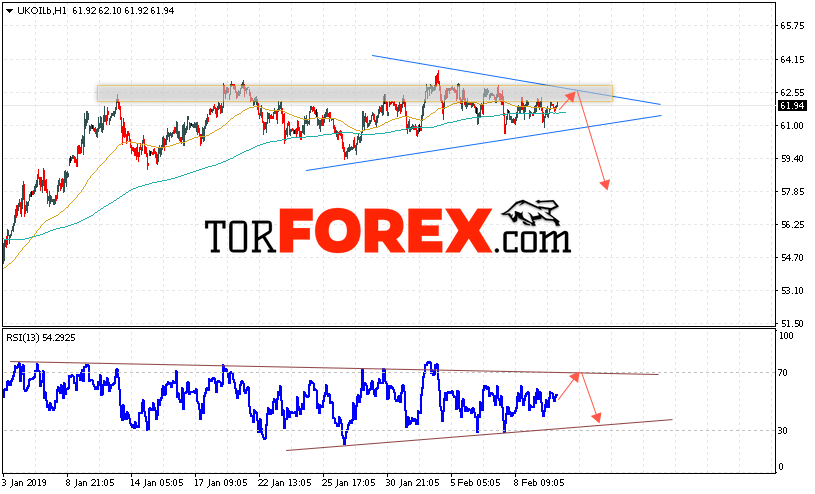 Таким образом, Аналитика и прогноз цен на нефть на 13 февраля 2019 предполагает попытку теста уровня сопротивления вблизи области 62.55. Далее, продолжение падения с целью ниже уровня 57.85. В пользу падения выступит тест лини сопротивления. Отменой варианта падения цены нефти BRENT станет сильный рост и пробой уровня 65.05. Это укажет на продолжение роста котировок в область выше уровня 67.45.