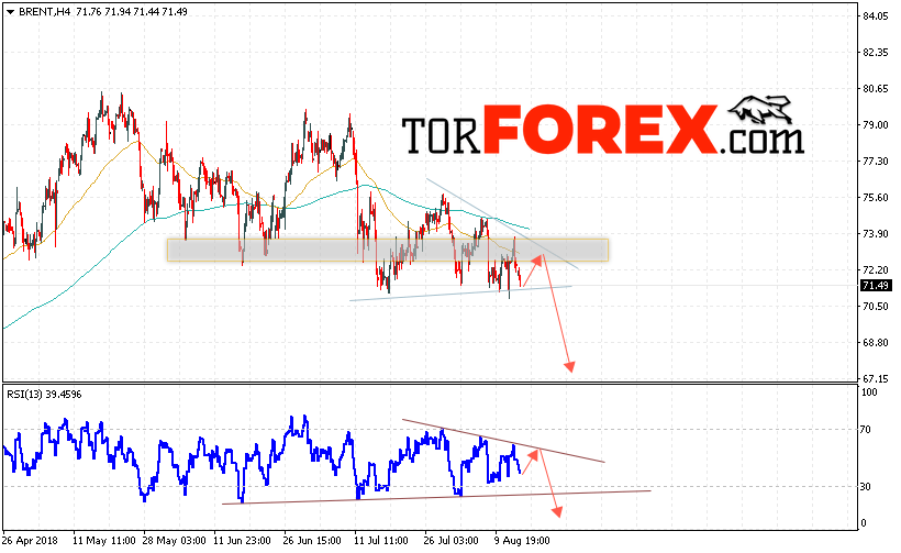 Таким образом, Аналитика и прогноз цен на нефть на 16 августа 2018 предполагает попытку теста уровня сопротивления вблизи области 72.50 и продолжения падения с целью ниже уровня 67.20, отменой варианта снижения цены нефти BRENT станет сильный рост и пробой уровня 75.50, что укажет на продолжение роста котировок в область выше уровня 78.50.