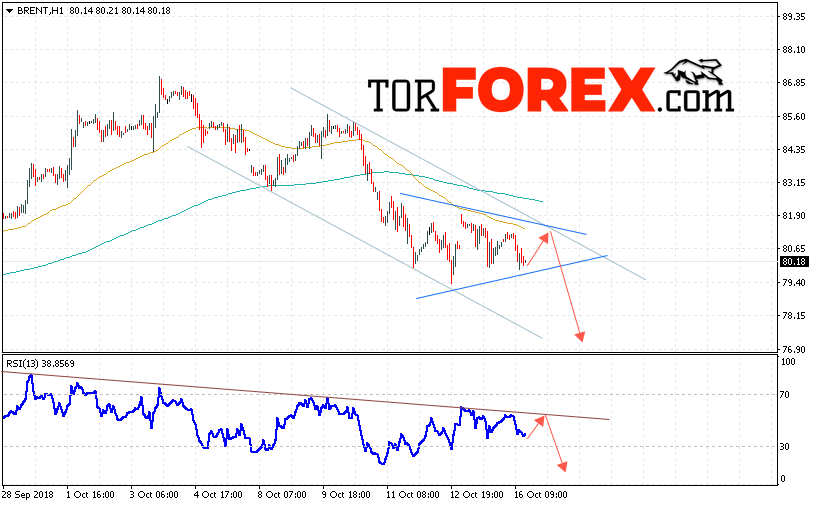 Таким образом, Аналитика и прогноз цен на нефть на 17 октября 2018 предполагает попытку теста уровня сопротивления вблизи области 81.20 и продолжения падения с целью ниже уровня 76.90, отменой варианта падения цены нефти BRENT станет сильный рост и пробой уровня 82.05, что укажет на продолжение роста котировок в область выше уровня 84.50.