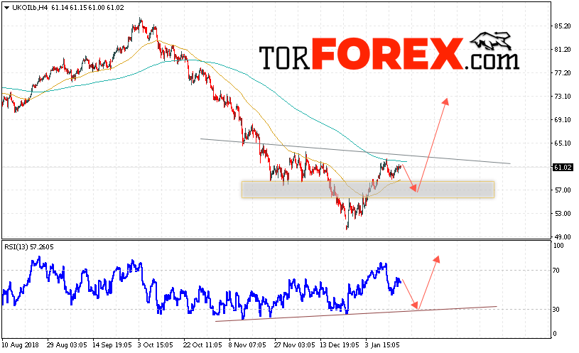 Таким образом, Аналитика и прогноз цен на нефть на 18 января 2019 предполагает попытку теста уровня поддержки вблизи области 57.50. Далее, продолжение роста с целью выше уровня 73.00. В пользу роста выступает формирование разворотной модели «Голова и плечи». Отменой варианта роста цены нефти BRENT станет падение и пробой уровня 52.50. Это укажет на продолжение снижения котировок в область ниже уровня 48.05.