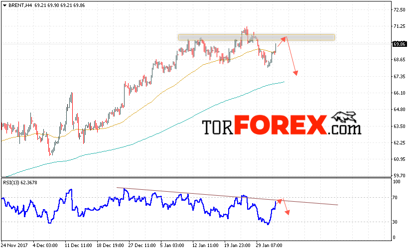 Таким образом, Аналитика и прогноз цен на нефть на 2 февраля 2018 предполагает попытку теста уровня 70.20 и продолжения падения с целью ниже уровня 67.30, отменой варианта падения цены нефти BRENT станет пробой уровня 71.40, что укажет на продолжение роста котировок в область выше уровня 72.50.