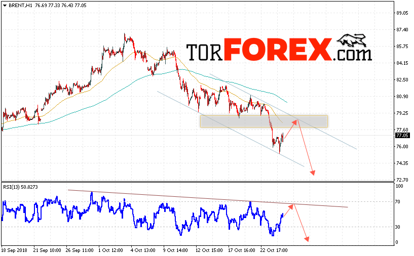 Таким образом, Аналитика и прогноз цен на нефть на 25 октября 2018 предполагает попытку теста уровня сопротивления вблизи области 78.50 и продолжения падения с целью ниже уровня 73.50, отменой варианта падения цены нефти BRENT станет сильный рост и пробой уровня 79.50, что укажет на продолжение роста котировок в область выше уровня 84.50.