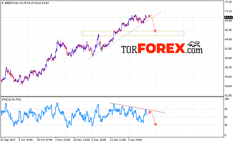 Таким образом, Аналитика и прогноз цен на нефть на 25 января 2018 предполагает попытку теста уровня 70.00 и продолжение падения с целью ниже уровня 66.50, отменой варианта падения цены нефти BRENT станет пробой уровня 71.00, что укажет на продолжение роста котировок в область выше уровня 72.50.
