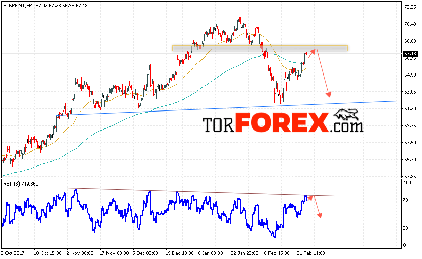 Таким образом, Аналитика и прогноз цен на нефть на 27 февраля 2018 предполагает попытку теста уровня сопротивления вблизи области 67.50 и продолжения падения с целью ниже уровня 63.00, отменой варианта падения цены нефти BRENT станет пробой уровня 71.00, что укажет на продолжение роста котировок в область выше уровня 73.50.