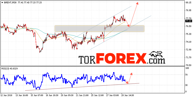 Таким образом, Аналитика и прогноз цен на нефть на 29 июня 2018 предполагает попытку теста уровня поддержки вблизи области 76.50 и продолжения роста с целью выше уровня 80.15, отменой варианта роста цены нефти BRENT станет падение и пробой уровня 75.20, что укажет на продолжение снижения котировок в область ниже уровня 72.90.