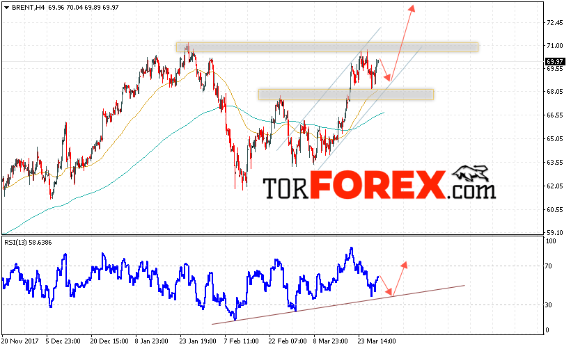 Таким образом, Аналитика и прогноз цен на нефть на 3 апреля 2018 предполагает попытку теста нижней границы канала вблизи области 68.50 и продолжения роста с целью выше уровня 73.00, отменой варианта роста цены нефти BRENT станет пробой уровня 67.50, что укажет на продолжение падения котировок в область ниже уровня 65.00.