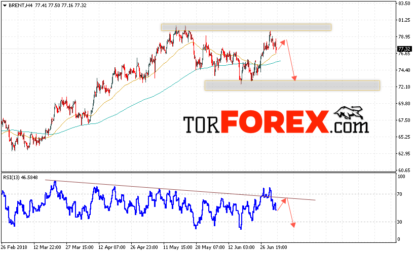 Таким образом, Аналитика и прогноз цен на нефть на 4 июля 2018 предполагает попытку теста уровня сопротивления вблизи области 78.50 и продолжения падения с целью ниже уровня 72.50, отменой варианта снижения цены нефти BRENT станет сильный рост и пробой уровня 81.20, что укажет на продолжение роста котировок в область выше уровня 85.00.