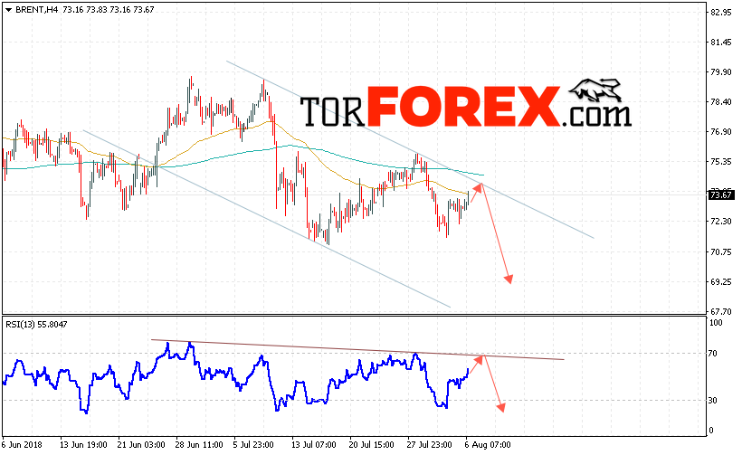 Таким образом, Аналитика и прогноз цен на нефть на 7 августа 2018 предполагает попытку теста уровня сопротивления вблизи области 73.90 и продолжения падения с целью ниже уровня 69.25, отменой варианта снижения цены нефти BRENT станет сильный рост и пробой уровня 75.40, что укажет на продолжение роста котировок в область выше уровня 77.50.