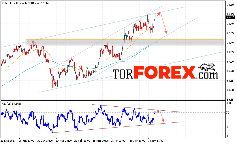 Таким образом, Аналитика и прогноз цен на нефть на 8 мая 2018 предполагает попытку теста уровня сопротивления вблизи области 76.20 и продолжения падения с целью ниже уровня 72.55, отменой варианта падения цены нефти BRENT станет сильный рост и пробой уровня 76.00, что укажет на продолжение роста котировок в область выше уровня 78.50.