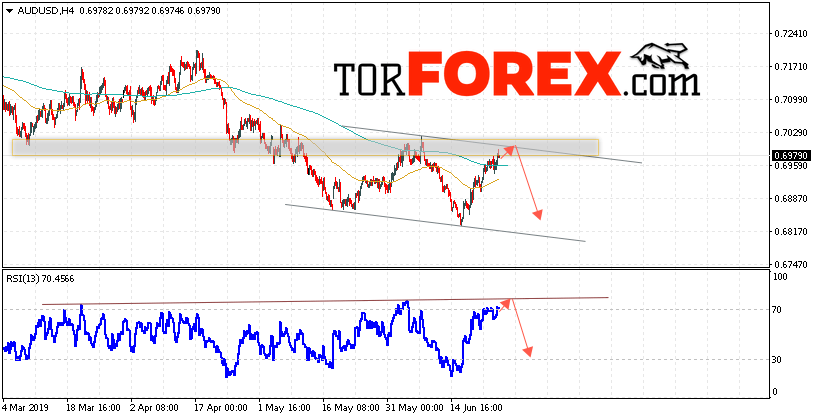 Таким образом, AUD/USD прогноз Форекс и аналитика на 27 июня 2019 предполагает попытку теста уровня сопротивления вблизи области 0.7005. Далее, продолжение падения котировок пары ниже уровня вблизи уровня 0.6835. Дополнительным сигналом в пользу снижения пары выступит тест линии тренда на индикаторе относительной силы. Отменой варианта падения станет сильный рост и пробой области 0.7030. Это укажет на продолжение подъёма котировок с потенциальной целью выше уровня 0.7145.