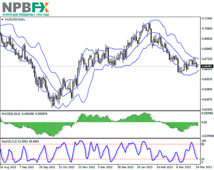 Пара AUD/USD показывает незначительный рост, торгуясь в районе 0.6654. Напомним, что в прошлую пятницу инструмент продемонстрировал довольно активное снижение, вернувшись к прежним локальным минимумам от 16 марта, а поводом к появлению коррекционной динамики по американской валюте стала мартовская макроэкономическая статистика по деловой активности в производственном секторе и сфере услуг США. Кроме того, в пользу доллара США сыграли технические факторы фиксации длинных позиций в активе.