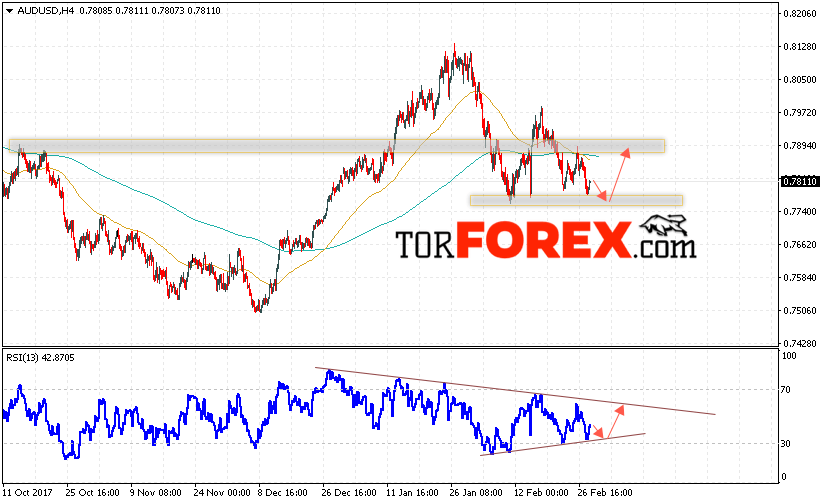Таким образом, AUD/USD прогноз Форекс и аналитика на 1 марта 2018 предполагает попытку теста уровня поддержки вблизи области 0.7755 и продолжение роста котировок выше уровня 0.7880, дополнительным сигналом в пользу роста пары выступит тест линии тренда на индикаторе относительной силы, отменой варианта роста пары станет пробой области 0.7720.