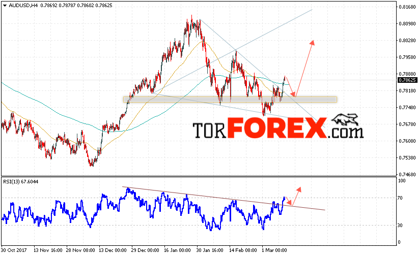 Таким образом, AUD/USD прогноз Форекс и аналитика на 13 марта 2018 предполагает попытку теста уровня поддержки вблизи области 0.7760 и продолжение роста котировок выше уровня 0.8020, дополнительным сигналом в пользу роста пары выступит тест линии тренда на индикаторе относительной силы, отменой варианта роста пары станет пробой области 0.7750.