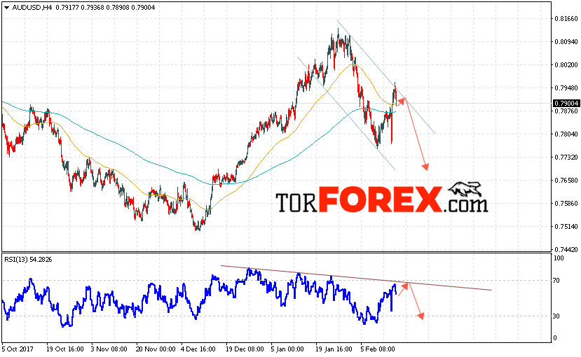 Таким образом, AUD/USD прогноз Форекс и аналитика на 16 февраля 2018 предполагает попытку теста верхней границы канала вблизи области 0.7915 и продолжение падения котировок ниже уровня 0.7710, дополнительным сигналом в пользу снижения пары выступит тест линии тренда на индикаторе относительной силы.