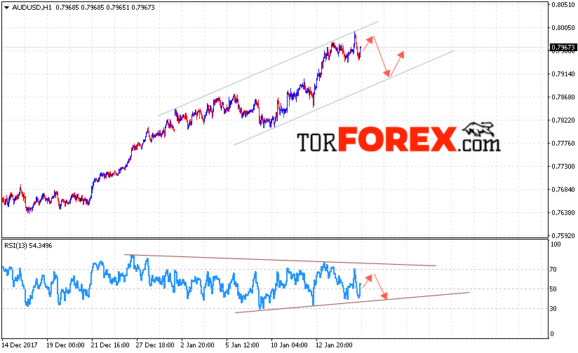 Таким образом, AUD/USD прогноз Форекс и аналитика на 18 января 2018 предполагает попытку теста нижней границы канала вблизи уровня 0.7915 и продолжение роста котировок выше уровня 0.8050, дополнительным сигналом в пользу падения пары выступает формирование разворотной модели «Голова и плечи».
