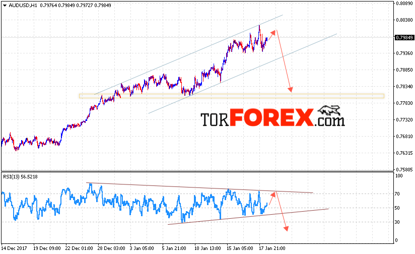 Таким образом, AUD/USD прогноз Форекс и аналитика на 19 января 2018 предполагает попытку теста уровня 0.7990 и начала падения котировок ниже уровня 0.7840, дополнительным сигналом в пользу падения пары выступает формирование разворотной модели «Голова и плечи».