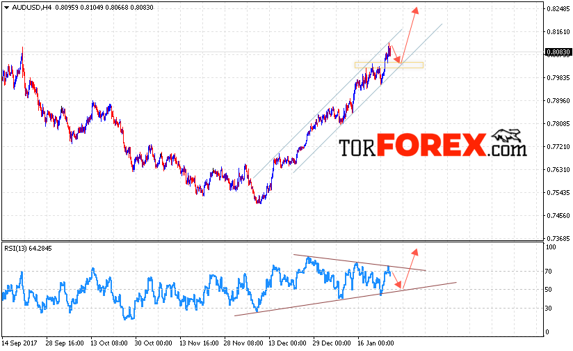 Таким образом, AUD/USD прогноз Форекс и аналитика на 26 января 2018 предполагает попытку теста нижней границы канала вблизи уровня 0.8020 и продолжение роста котировок выше уровня 0.8245, дополнительным сигналом в пользу роста пары выступит тест линии тренда на индикаторе относительной силы.