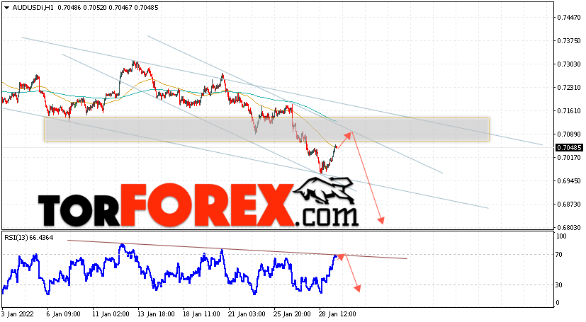 Таким образом, AUD/USD прогноз Форекс и аналитика на 1 февраля 2022 предполагает попытку теста уровня сопротивления вблизи области 0.7090. Далее, продолжение падения котировок пары ниже уровня 0.6825. Дополнительным сигналом в пользу снижения пары выступит тест линии тренда на индикаторе относительной силы. Отменой варианта падения станет сильный рост и пробой области 0.7185. Это укажет на продолжение подъёма котировок с потенциальной целью выше уровня 0.7345.