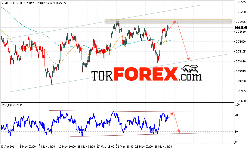 Таким образом, AUD/USD прогноз Форекс и аналитика на 1 июня 2018 предполагает попытку теста верхней границы канала вблизи области 0.7595 и продолжение падения котировок ниже уровня 0.7480, дополнительным сигналом в пользу падения пары выступит тест линии тренда на индикаторе относительной силы, отменой варианта снижения пары станет сильный рост и пробой области 0.7620.