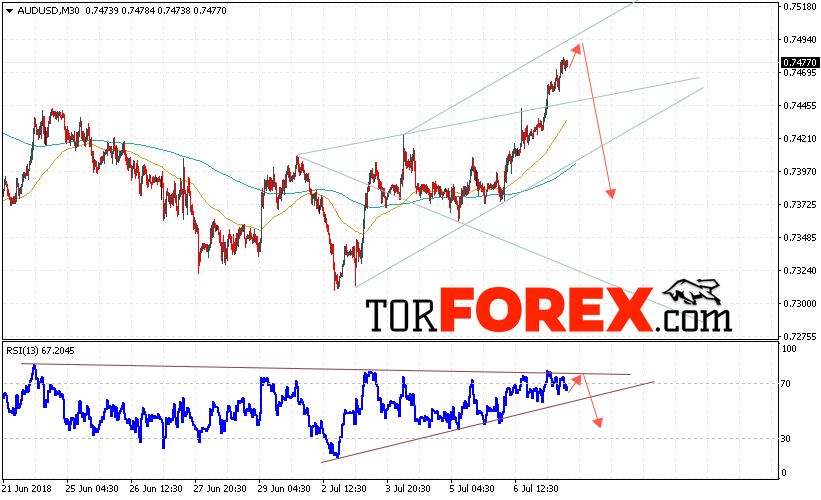 Таким образом, AUD/USD прогноз Форекс и аналитика на 10 июля 2018 предполагает попытку теста уровня сопротивления вблизи области 0.7495 и продолжение падения котировок ниже уровня 0.7370, дополнительным сигналом в пользу падения пары выступит тест линии тренда на индикаторе относительной силы, отменой варианта снижения пары станет сильный рост и пробой области 0.7510.