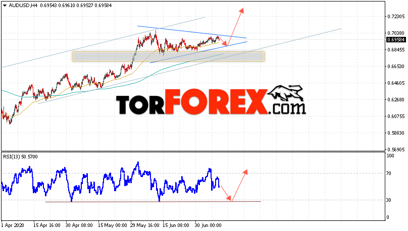 Таким образом, AUD/USD прогноз Форекс и аналитика на 10 июля 2020 предполагает попытку теста уровня поддержки вблизи области 0.6935. Далее, продолжение роста котировок пары выше уровня вблизи уровня 0.7245. Дополнительным сигналом в пользу подъёма пары выступит тест линии тренда на индикаторе относительной силы. Отменой варианта роста станет падение и пробой области 0.6805. Это укажет на продолжение снижения котировок с потенциальной целью ниже уровня 0.6635.